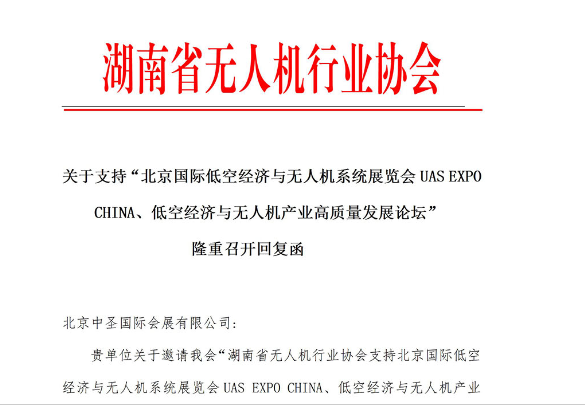 河南省无人机行业协会关于同意支持“北京国际低空经济与无人机系统产业展览会”的复函