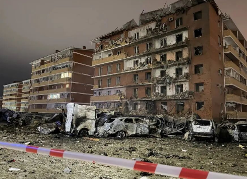 俄西南部遭无人机袭击致至少11人受伤,这是俄罗斯阿迪格共和国领导人库姆比洛夫1月21日在社交媒体上发布的遭无人机袭击的公寓楼和停车场照片。 俄罗斯西南部阿迪格共和国1月20日晚至21日凌晨遭遇无人机袭击,造成至少11人受伤。