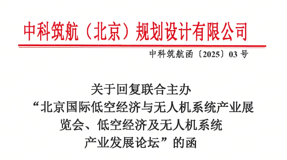 中科筑航(北京)规划设计有限公司关于联合主办"北京国际低空经济与无人机系统产业展览会、低空经济及无人机系统产业发展论坛"的回复函