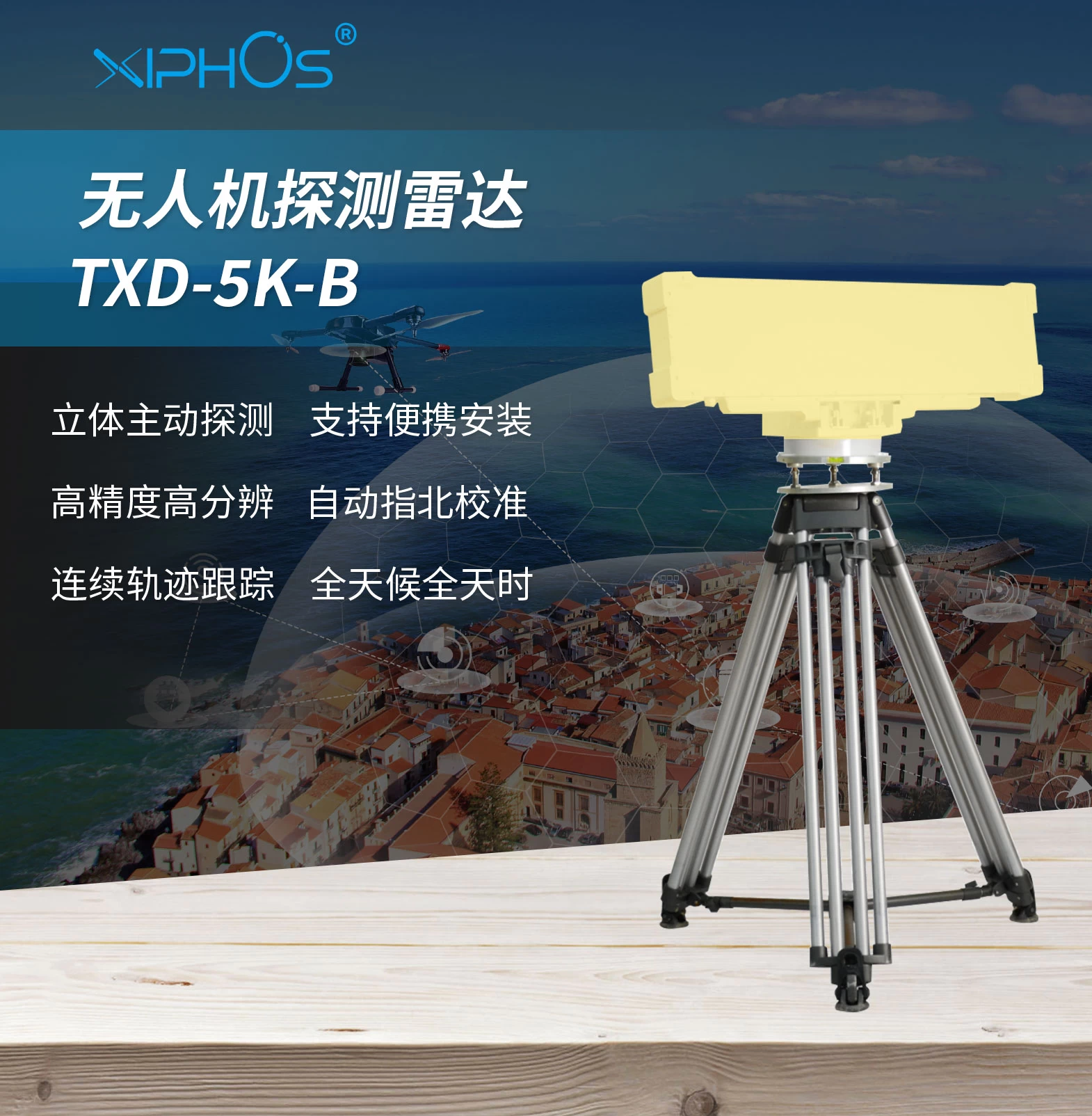 一款方位机扫、俯仰维相扫的脉冲多普勒体制三坐标雷达,主要用于对低空飞行器进行探测定位。该雷达可以精确探测目标的空间位置,配接光电系统,可与干扰、激光武器、导航诱骗等反制设备级联。