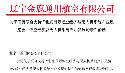 辽宁金鹿通用航空有限公司回复函支持国际低空经济展览会