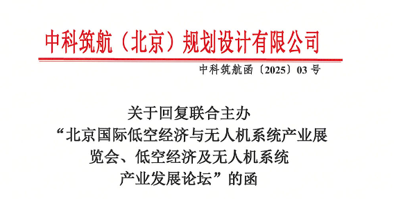 中科筑航(北京)规划设计有限公司关于回复联合主办“北京国际低空经济与无人机系统产业展览会、低空经济及无人机系统产业发展论坛”的函