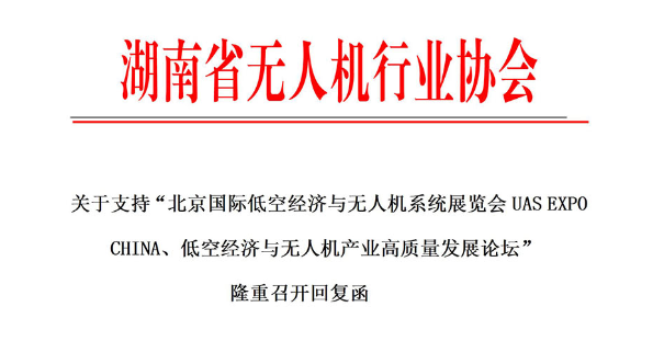 湖南省无人机行业协会支持国际低空经济与无人机系统产业展览会回复函